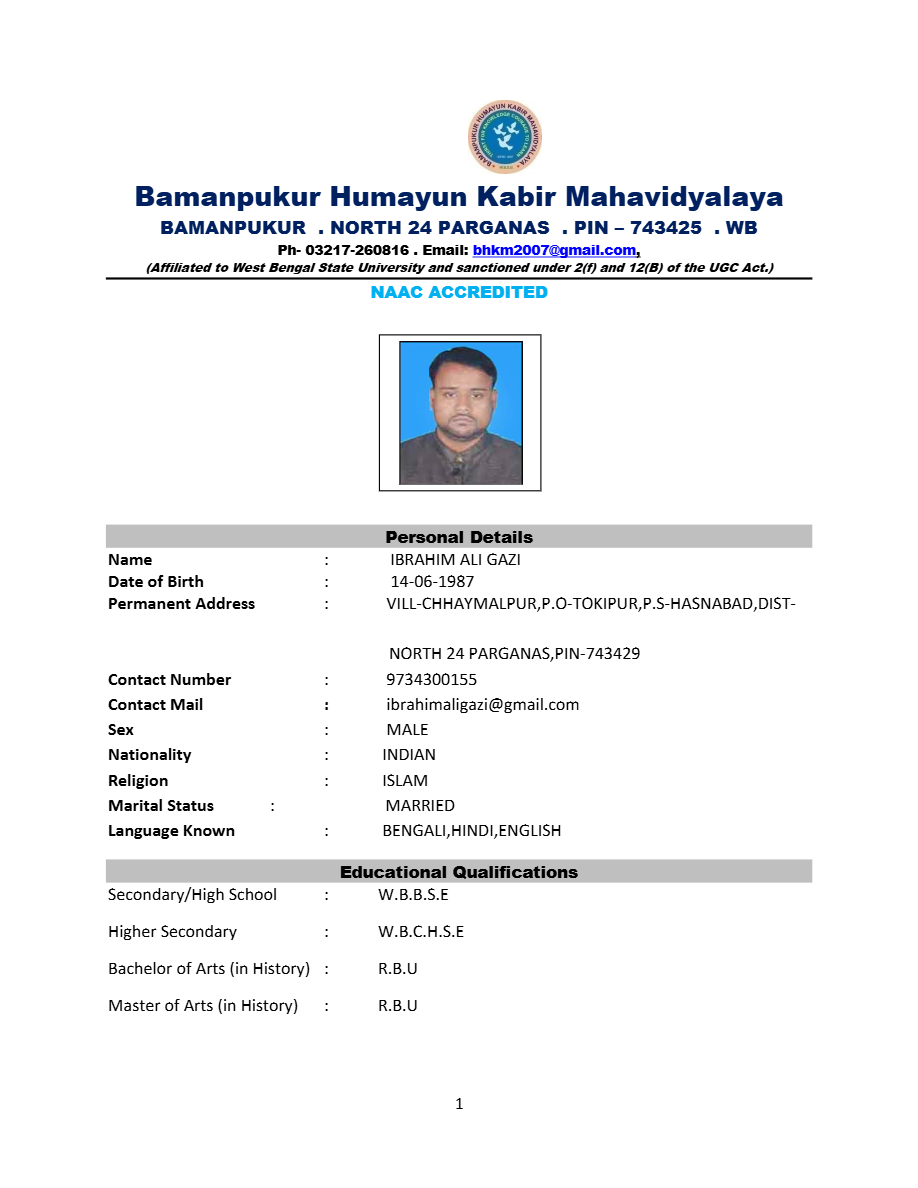 History(HISA) is a non-lab based honours subject available in Day shift under the BACHELOR OF ARTS Course in our college.